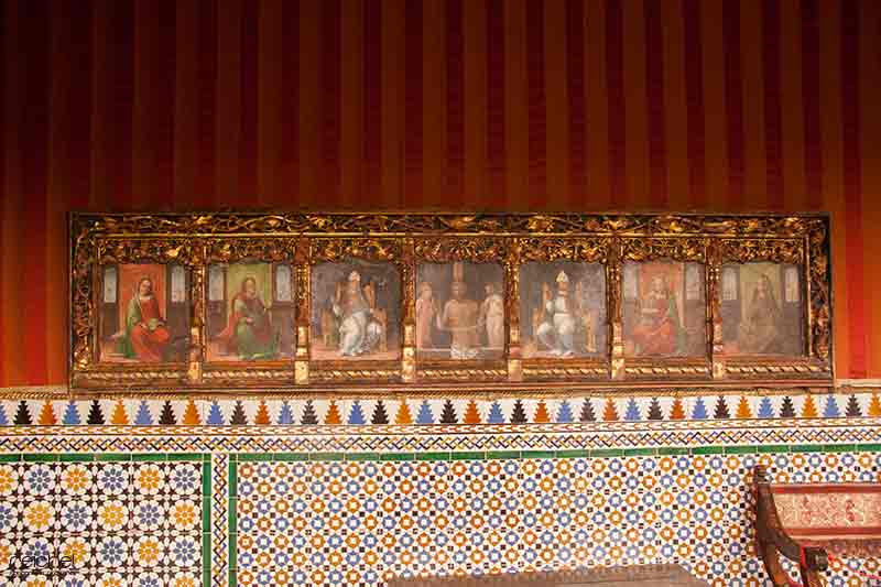 Seguimos haciendo fotos del Alcázar de Segovia y accedemos al la Sala Cordon.Si antes nos encontrábamos imágenes de Reyes, ahora nos encontramos imágenes de santos. Esta sala lo que me sorprendió también mucho son los techos.
